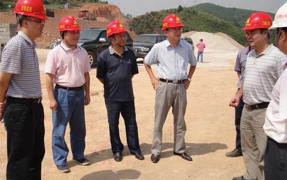 圖為:創(chuàng)先爭優(yōu)調(diào)研組在施工現(xiàn)場開展調(diào)研工作