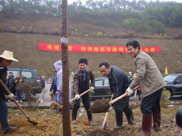 2012年2月2日,由集團公司朱堅和董事長帶隊,直屬各單位領(lǐng)導及相關(guān)人員共計18人,到南寧至友誼關(guān)高速公路蘇圩互通立交參加自治區(qū)交通系統(tǒng)“2012年廣西交通綠化美化植樹活動”。