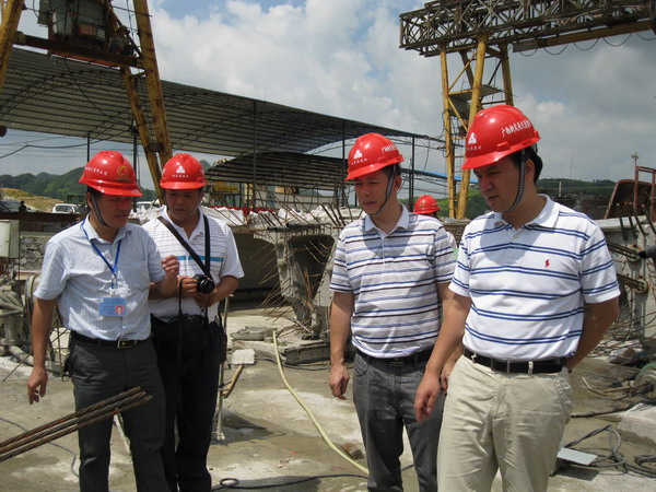 為嚴防各類重特大事故的發(fā)生,確保企業(yè)質(zhì)量、安全生產(chǎn)工作繼續(xù)保持良好的發(fā)展態(tài)勢,7月9日至13日,集團公司副總經(jīng)理劉明洪、總工程師覃炳賢分別率領檢查組,深入路橋總公司靖那高速公路1標、航務處陽鹿高速公路№.5、6標、路建公司馬平路№.1標、長興公司那平二級公路№1標等直屬單位在建項目,進行工程質(zhì)量、安全生產(chǎn)檢查,并親切慰問辛勤奮戰(zhàn)在項目一線的員工。