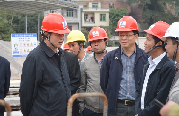 11月23日,自治區(qū)交通運輸廳廳長潘巍蒞臨那坡至平孟口岸公路施工現(xiàn)場檢查指導工作,集團公司董事長朱堅和、百色市副市長陶榮鉛等相關領導陪同檢查。