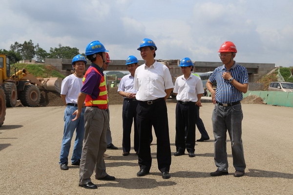 8月7日上午,自治區(qū)國資委主任、黨委書記管躍慶一行來到集團公司承建的沿海高速改擴建項目工地,在那馬北互通立交工地現(xiàn)場,全面了解項目投資、業(yè)績考核完成情況和一期工程及后續(xù)改擴建工程推進情況,察看沿海高速改擴建一期工程瀝青路面施工進展。管躍慶要求,要認真貫徹中央和自治區(qū)黨委、政府穩(wěn)增長、促改革、調(diào)結(jié)構、惠民生的決策部署,主動作為,扎實抓好項目管理、建設質(zhì)量和安全生產(chǎn),為我區(qū)經(jīng)濟社會發(fā)展和實現(xiàn)“兩個建成”作出積極貢獻。集團公司總經(jīng)理李定倫陪同調(diào)研。