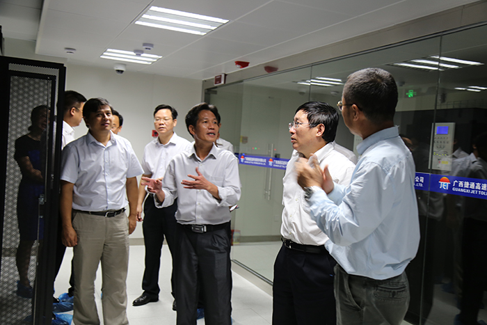 簽約儀式結束后,與會的各位領導共同參觀了我集團公司控股企業(yè)——廣西捷通公司ETC中心機房,并聽取了技術人員對中心系統(tǒng)建設情況、設備安裝使用情況、機房運轉(zhuǎn)流程、技術支持、監(jiān)控及操作、消防通道等情況的匯報。