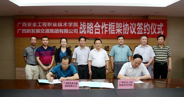 黎志逘祝賀雙方正式建立戰(zhàn)略合作伙伴關(guān)系。他說(shuō),廣西安全工程職業(yè)技術(shù)學(xué)院是經(jīng)廣西壯族自治區(qū)人民政府批準(zhǔn)成立、教育部備案的公辦全日制普通高等職業(yè)學(xué)院,隸屬?gòu)V西壯族自治區(qū)安全生產(chǎn)監(jiān)督管理局管理,是廣西唯一一所、全國(guó)第三所專門培養(yǎng)安全類高等專業(yè)技術(shù)人才的現(xiàn)代化職業(yè)學(xué)院。為了深入貫徹黨的十八屆六中全會(huì)和習(xí)近平總書(shū)記、李克強(qiáng)總理關(guān)于安全生產(chǎn)工作的重要指示批示精神,推動(dòng)企業(yè)落實(shí)安全生產(chǎn)主體責(zé)任,在全社會(huì)凝聚弘揚(yáng)安全發(fā)展理念、支持安全生產(chǎn)的共識(shí),“十三五”期間乃至更長(zhǎng)一個(gè)時(shí)期,雙方將建立互信、互補(bǔ)、互援的戰(zhàn)略合作關(guān)系,開(kāi)啟校企全面深入合作的新篇章。通過(guò)深入合作交流,促進(jìn)了廣西安全工程職業(yè)技術(shù)學(xué)院發(fā)展,提升了廣西新發(fā)展交通集團(tuán)有限公司在安全生產(chǎn)方面的實(shí)力,最終實(shí)現(xiàn)雙方的共贏。