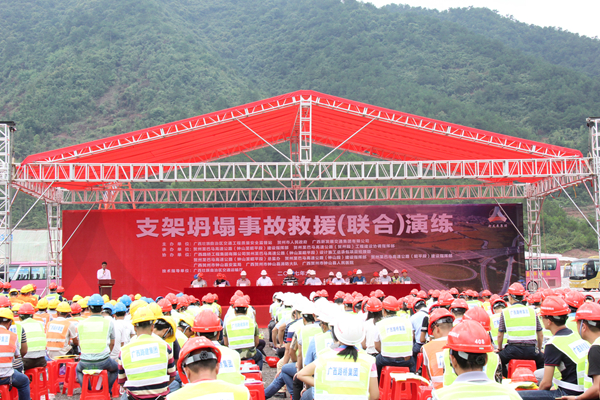 6月28日上午,由廣西新發(fā)展交通集團、自治區(qū)交通工程質量安全監(jiān)督站、賀州市人民政府聯(lián)合開展的支架坍塌事故應急演練活動在鐘昭路一分部鐘山服務區(qū)施工現場舉行。演練效果逼真,更加貼近實戰(zhàn)。
