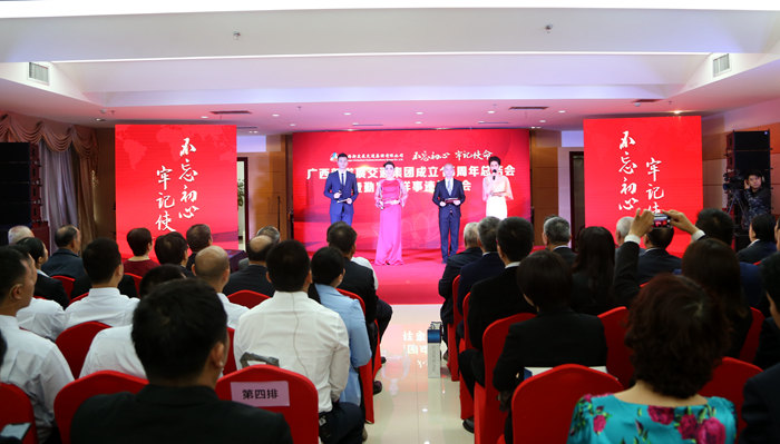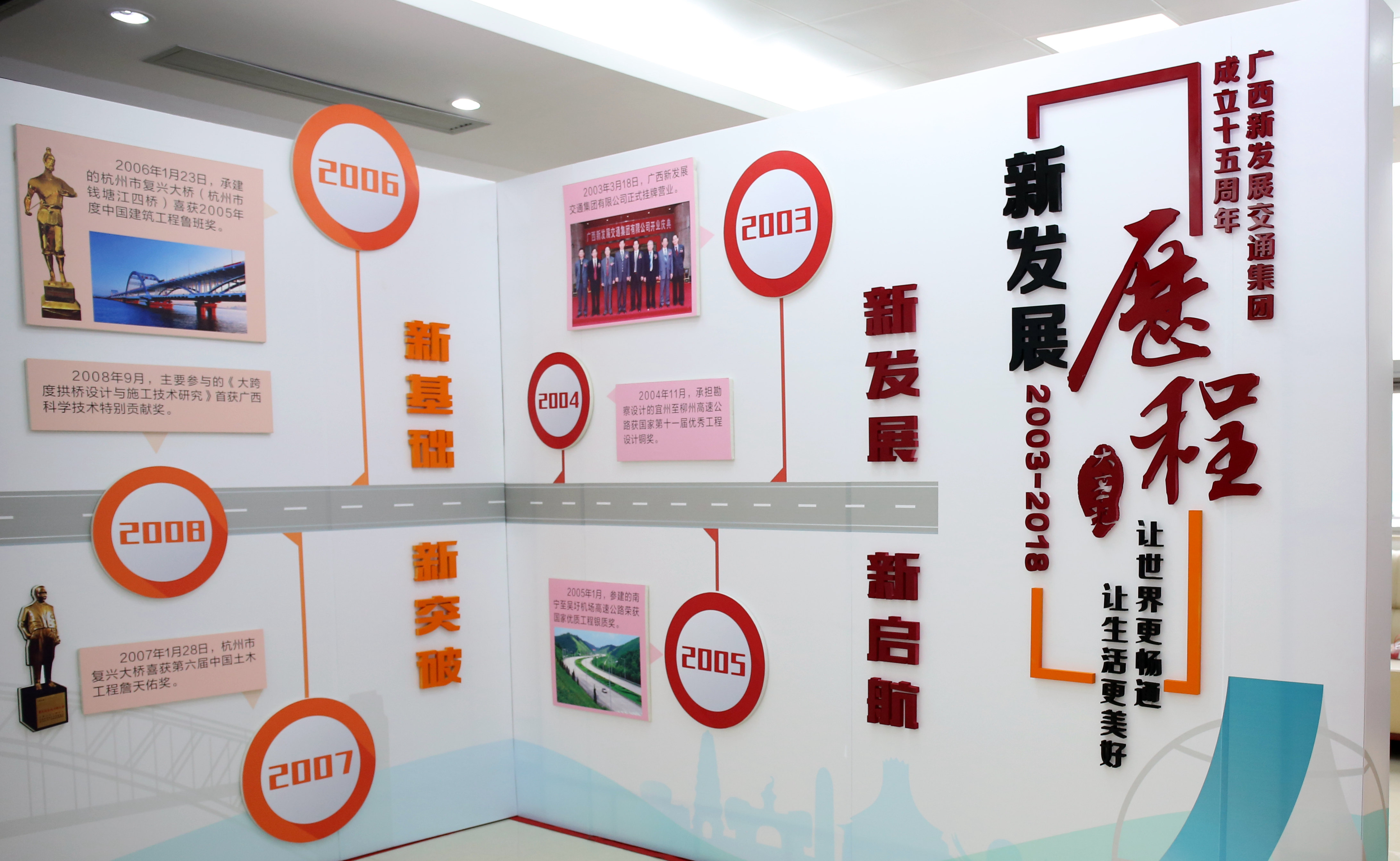 在活動(dòng)現(xiàn)場(chǎng)入口處,設(shè)置有一面企業(yè)發(fā)展歷程墻,展示了歷年來(lái)集團(tuán)公司發(fā)展取得的矚目成績(jī)?;顒?dòng)開(kāi)始后首先播放了《新時(shí)代 新發(fā)展 新征程》——廣西新發(fā)展交通集團(tuán)15周年紀(jì)錄片,對(duì)15年發(fā)展史進(jìn)行了有聲有色的回顧。