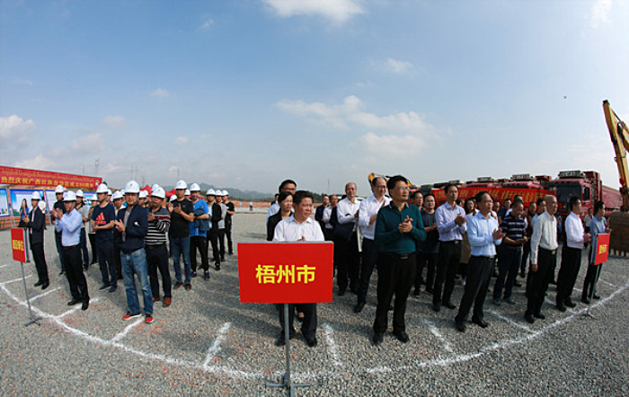 自治區(qū)交通運(yùn)輸廳巡視員李小林宣布:梧州至信都高速公路項(xiàng)目正式開工建設(shè)。