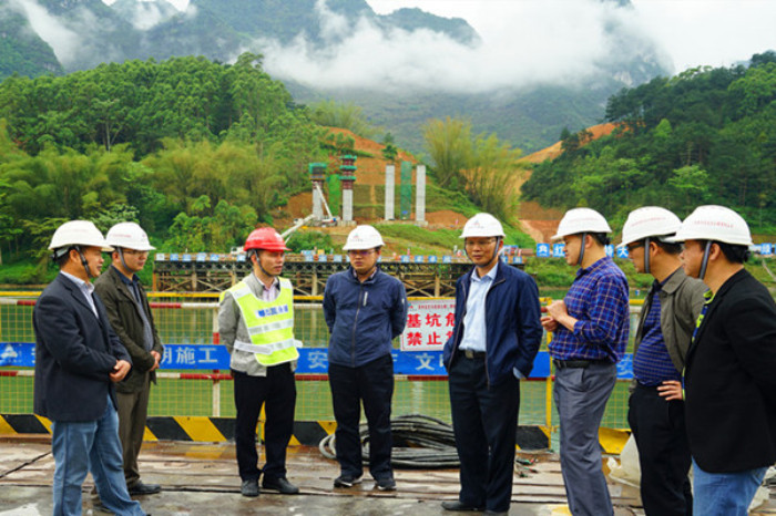 會后,李定倫率隊到都巴路控制性工程紅水河特大橋施工現(xiàn)場督導安全生產(chǎn)工作。