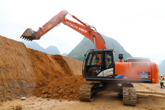 圖7:參賽選手用挖掘機(jī)修整邊坡