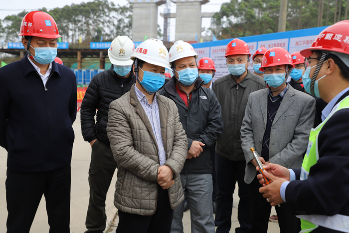 3月5日,自治區(qū)交通運輸廳副廳長王劼耘到大塘至浦北高速公路項目開展防疫及復工復產(chǎn)工作情況調(diào)研。自治區(qū)交通工程質(zhì)量安全監(jiān)督站站長陳津維、自治區(qū)高速公路發(fā)展中心主任周北、欽州市政府副秘書長黃立和一同調(diào)研。