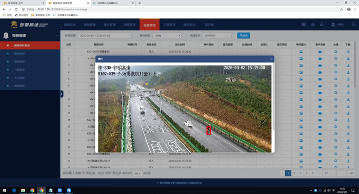 近日,昭平運營管理中心智慧高速軟件平臺引入了“人工智能事件檢測報警系統(tǒng)”。該系統(tǒng)采用了人工智能深度學(xué)習(xí)技術(shù),在鐘昭高速每2公里一個監(jiān)控攝像機的硬件基礎(chǔ)上,能夠?qū)崿F(xiàn)鐘昭高速全線事件檢測全面覆蓋,快速發(fā)現(xiàn)路上異常情況并發(fā)出警報。